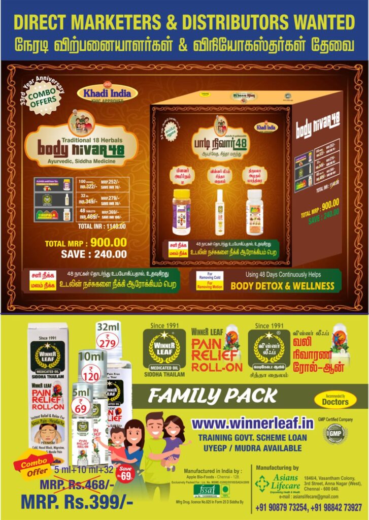 Once registered as a distributor the Winner leaf medicated oil can be sold in the market. This can be distributed for business purposes to small, big shops, doctors, hospitals, gyms, saloons, beauty parlors, malls, supermarkets, motels, other small entrepreneurs, for online sale in e-commerce like Amazon, Flipkart, snapdeal and others, door to door marketing, families in a gated community, apartments, government offices banks, schools, and other public places.